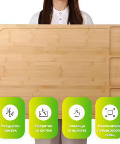 - Софистицирана изработка: Гладката и плоска повърхност гарантира, че ножовете няма да се повредят и че няма да има бамбукови трески.