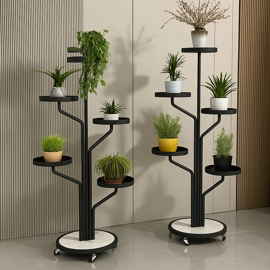 Floro™ – Елегантна стойка за растения с 5 нива с колела