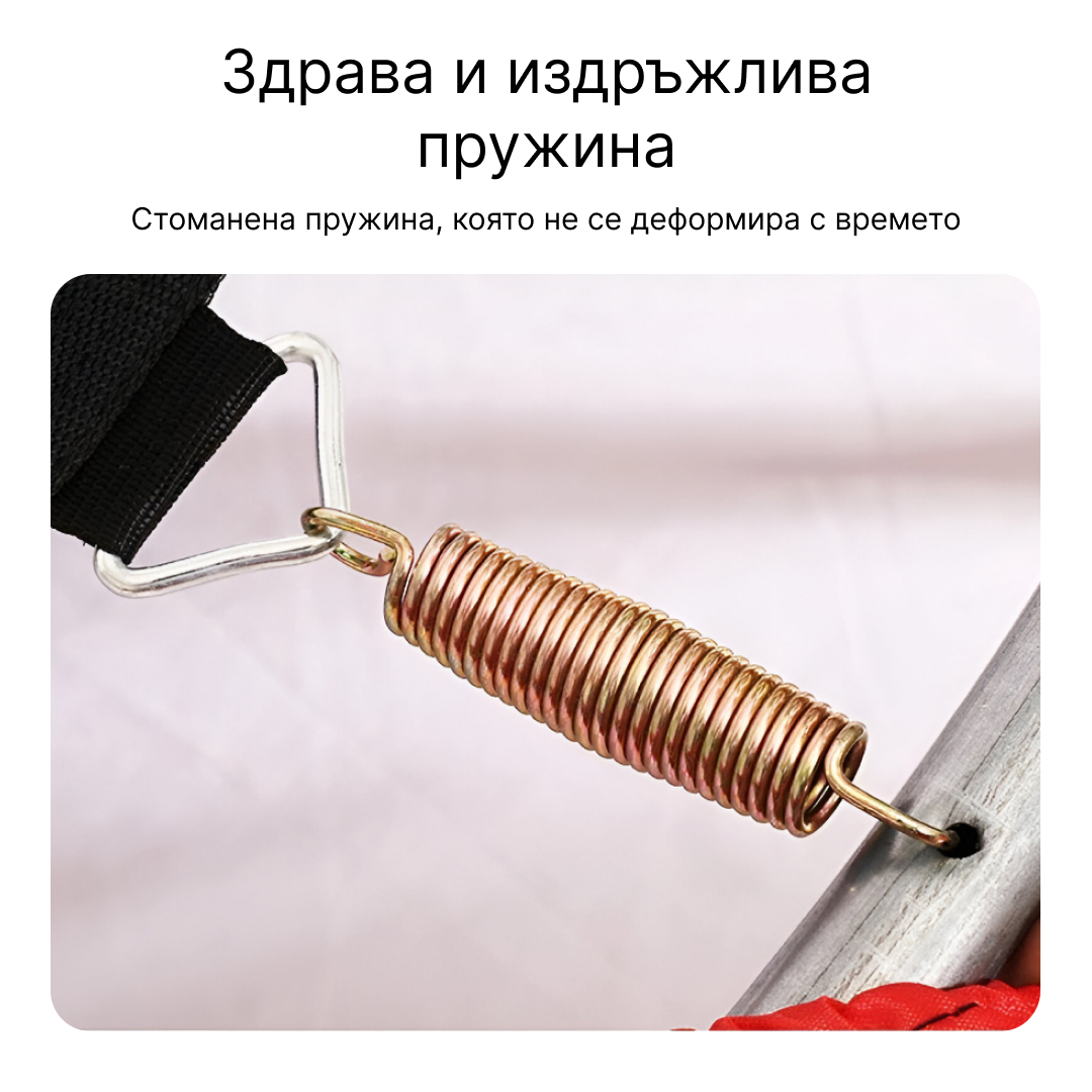 • Здрава конструкция: Стоманена рамка и UV-устойчива подложка – издържа до 100 кг.