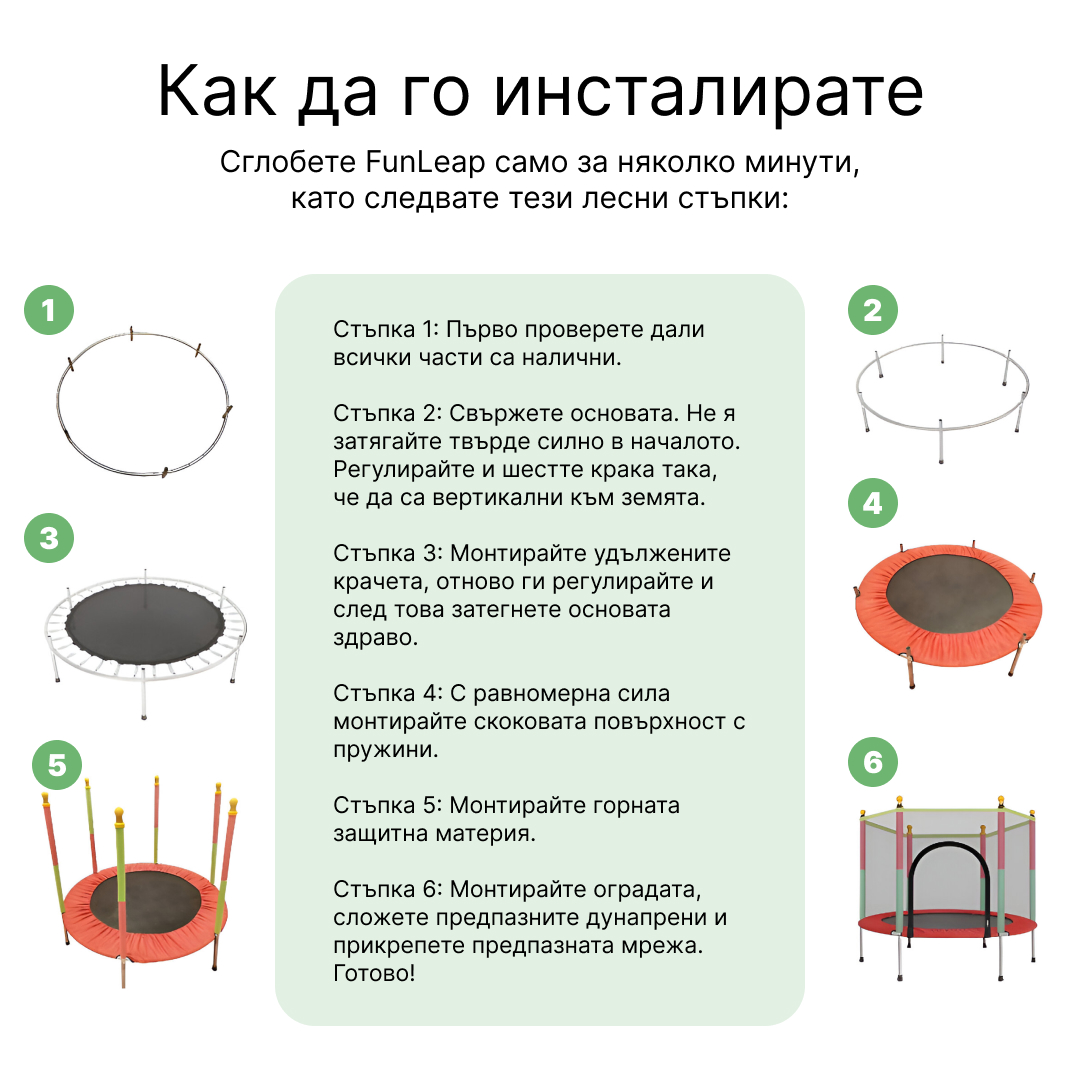 Въведете иновативна забава и здравословна активност у дома с FunLeap – монтаж за минути, пълна безопасност, идеална за всеки интериор и градина.