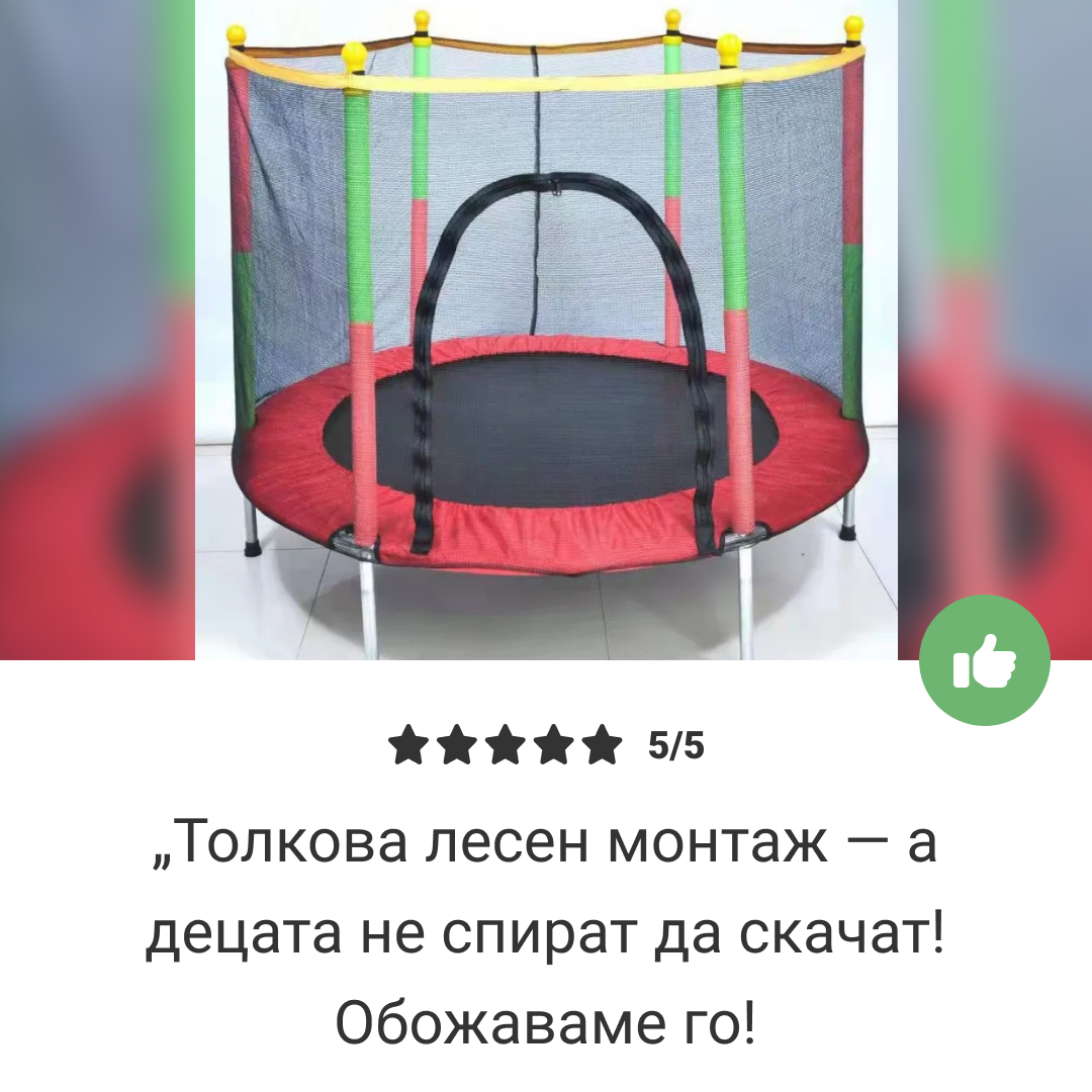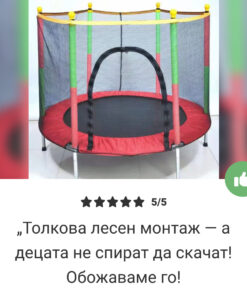 Трамплината е истински хит у дома! Децата вече не седят само пред телевизора. Изключително доволна съм от бързия монтаж и лекотата, с която се мести.