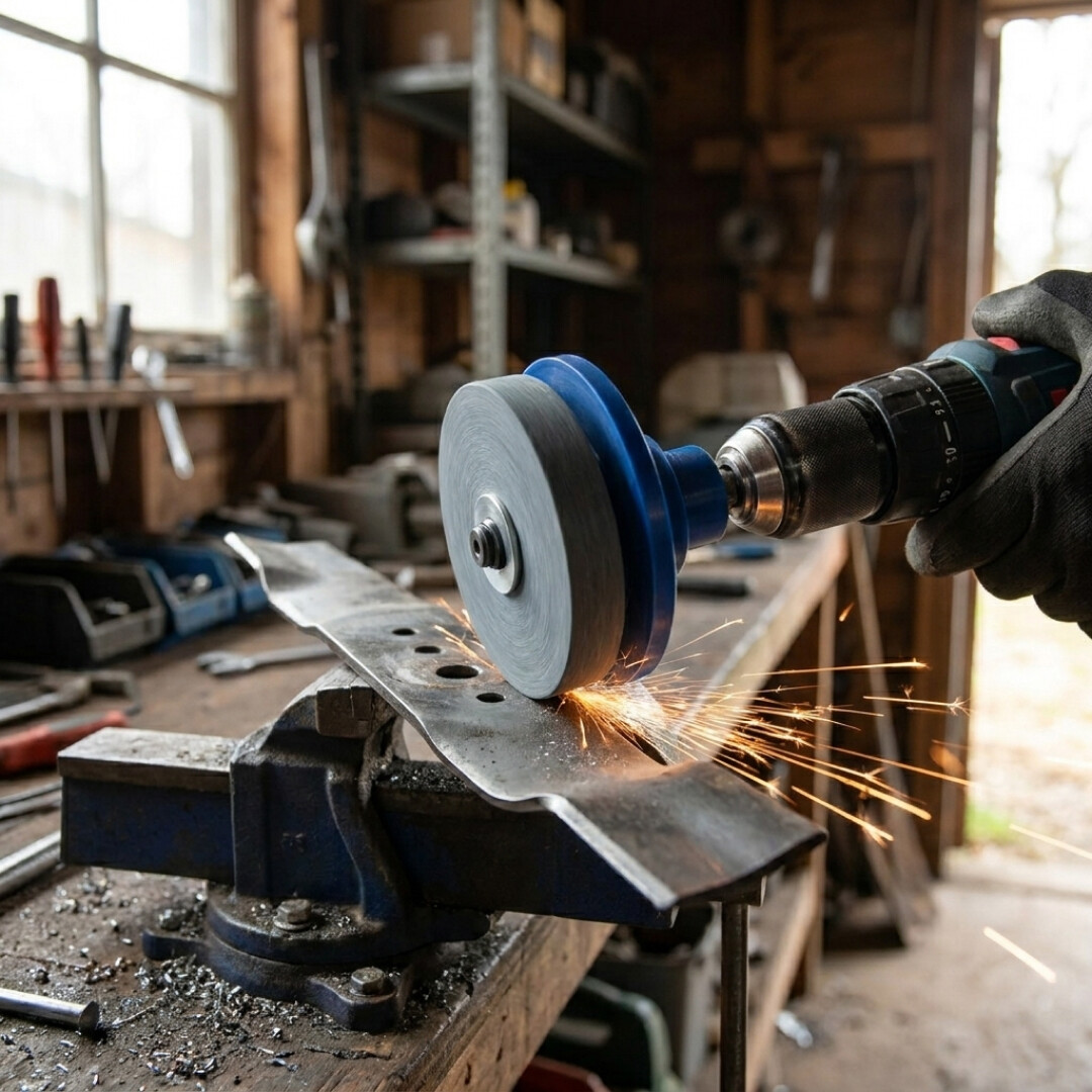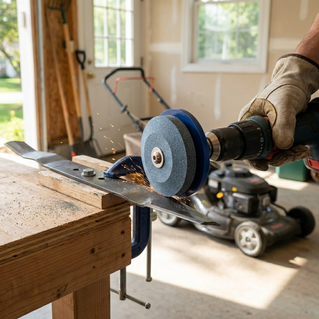 Подходящ е за заточване на остриетата на повечето стандартни косачки.