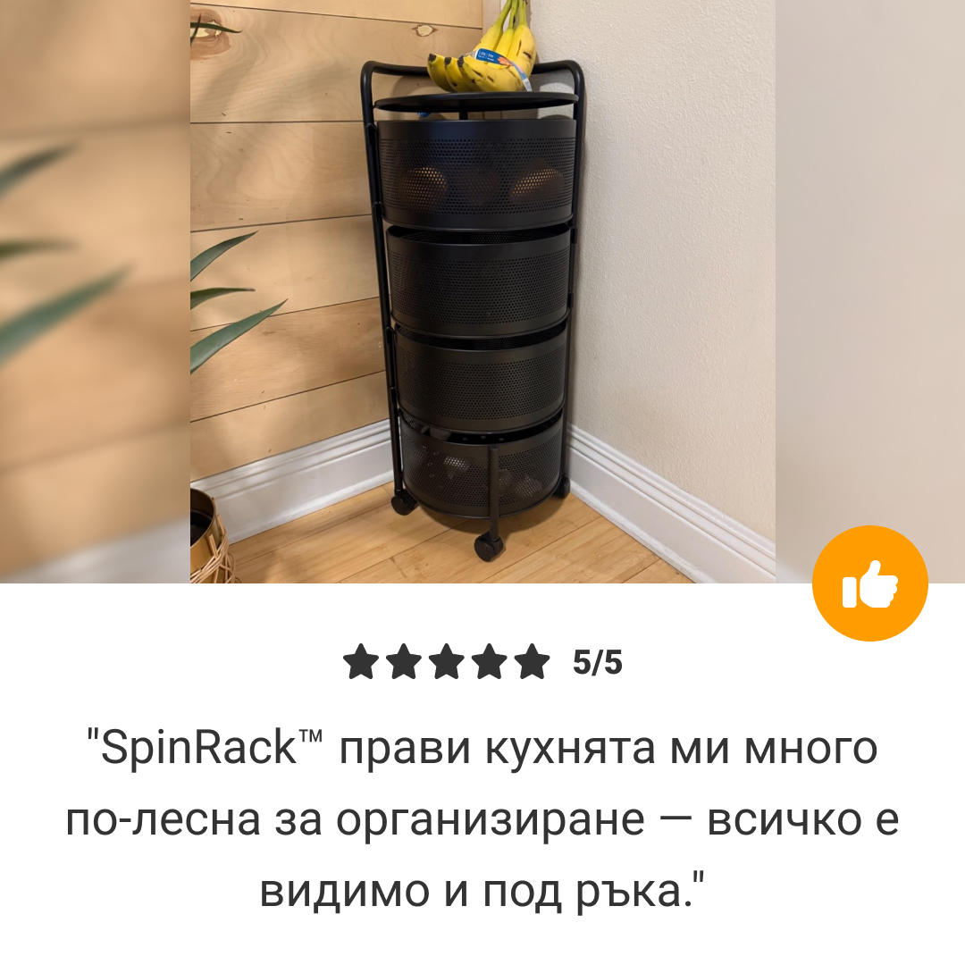 „Най-накрая нещо, което наистина поддържа реда. Завърташ, взимаш, премествaш – лесно и практично.“ - Мария Роси