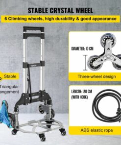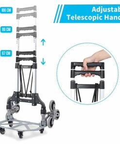 - Без вдигане по стъпалата – колелата изтласкват товара нагоре, вие само трябва да насочвате количката.