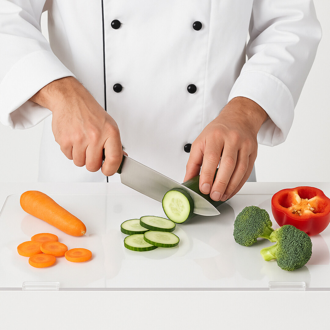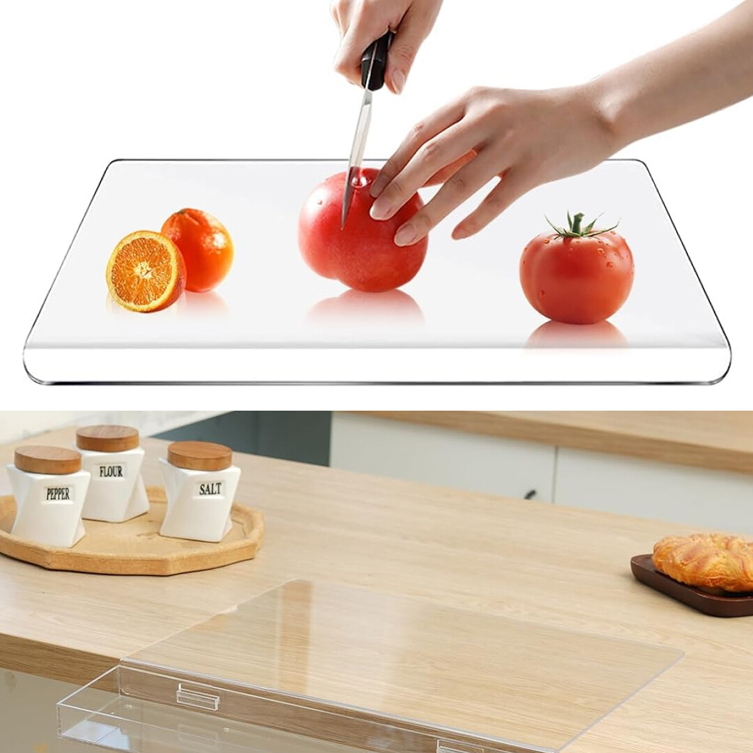 - Прозрачен и елегантен дизайн – Прозрачната акрилна дъска за рязане подчертава кухненската повърхност и се адаптира към всеки стил на обзавеждане.