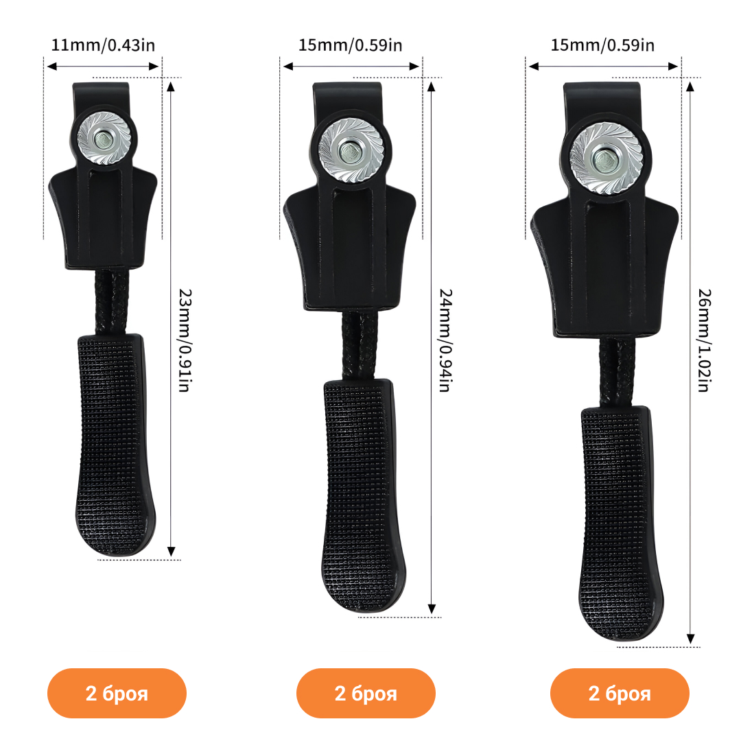 - Комплектът включва: 2 x S, 2 x M, 2 x L плъзгачи за ципове